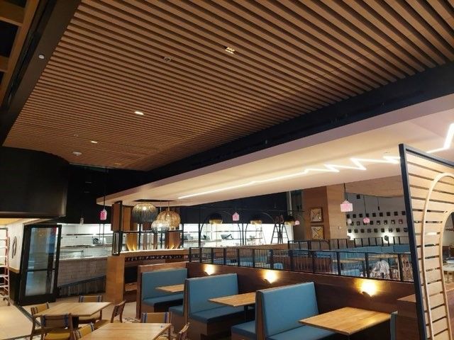 - Wood panel ceilings